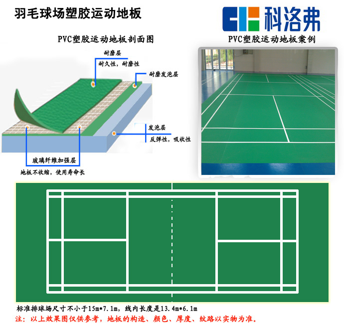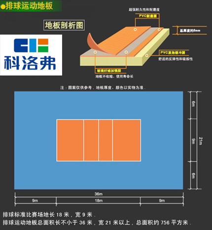 17、運動PVC地板的厚度常用的規格有:3.5mm,4.5mm,6.0mm,6.5mm,8.0mm。