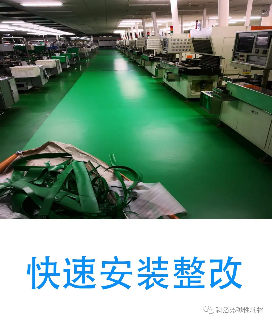 15 安裝施工快捷:高分子工業(yè)地板的安裝施工非常快捷,不用水泥砂漿,成品直接安裝,無揮發(fā)物產(chǎn)生,24小時后就可以使用。