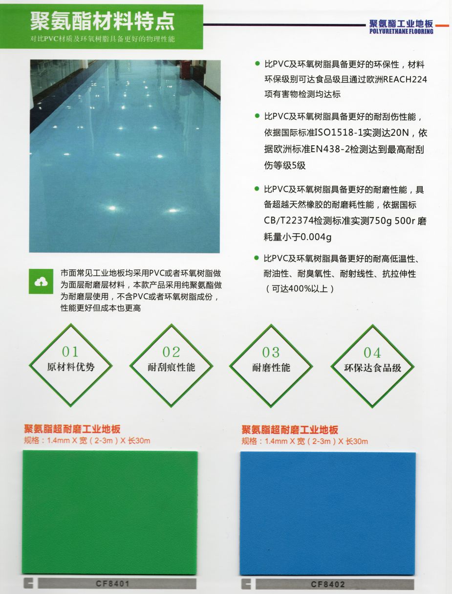 13 超輕超薄:高分子工業(yè)地板不超過1.5mm厚度,每平米 13 重量僅1-2KG,不足普通地面材料的5%。在高層建筑中對于樓體承重和空間節(jié)約,有著無可比擬的優(yōu)勢。同時在舊樓改造中有著特殊的優(yōu)勢。