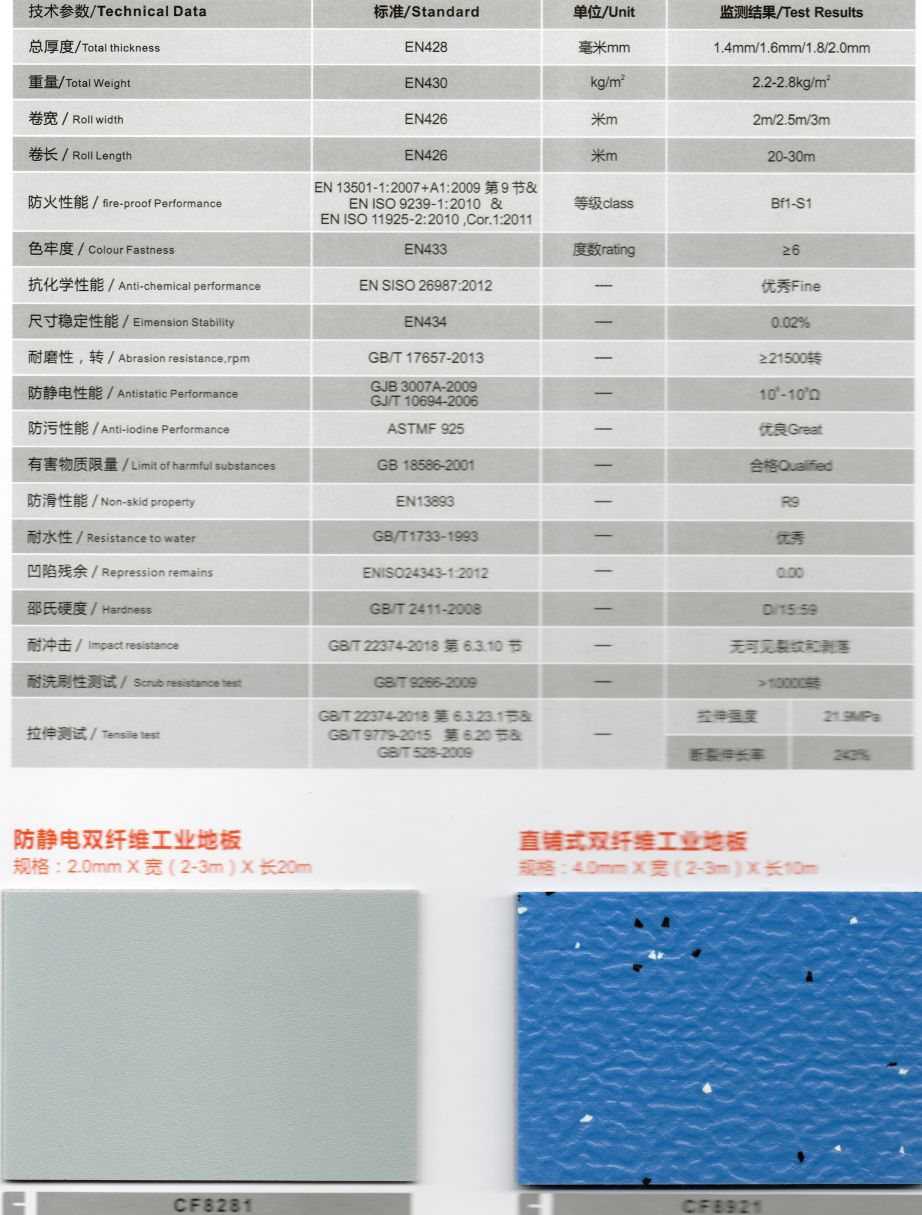 2 防靜電:獨(dú)特的防靜電配方使地板具備優(yōu)異的防靜電性能。