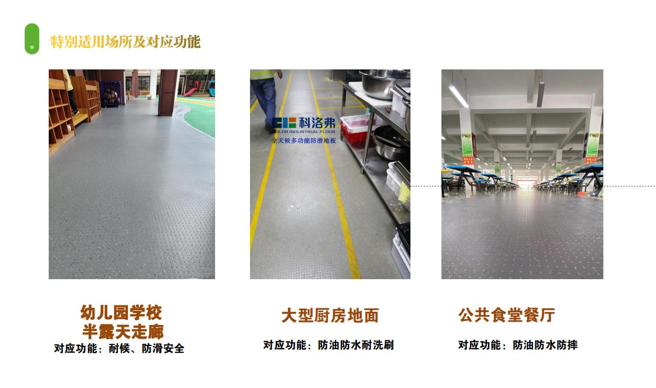 室內室外通用,特殊抗老化成份及配方保證防滑地板在室外使用時的使用壽命